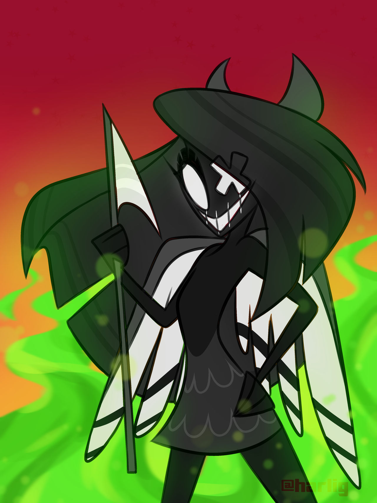 . Vagatha mรกs conocida como Vaggie. Hazbin Hotel Angel Dust. Exterminator Vaggie In The Flames art by harliig Artwork.